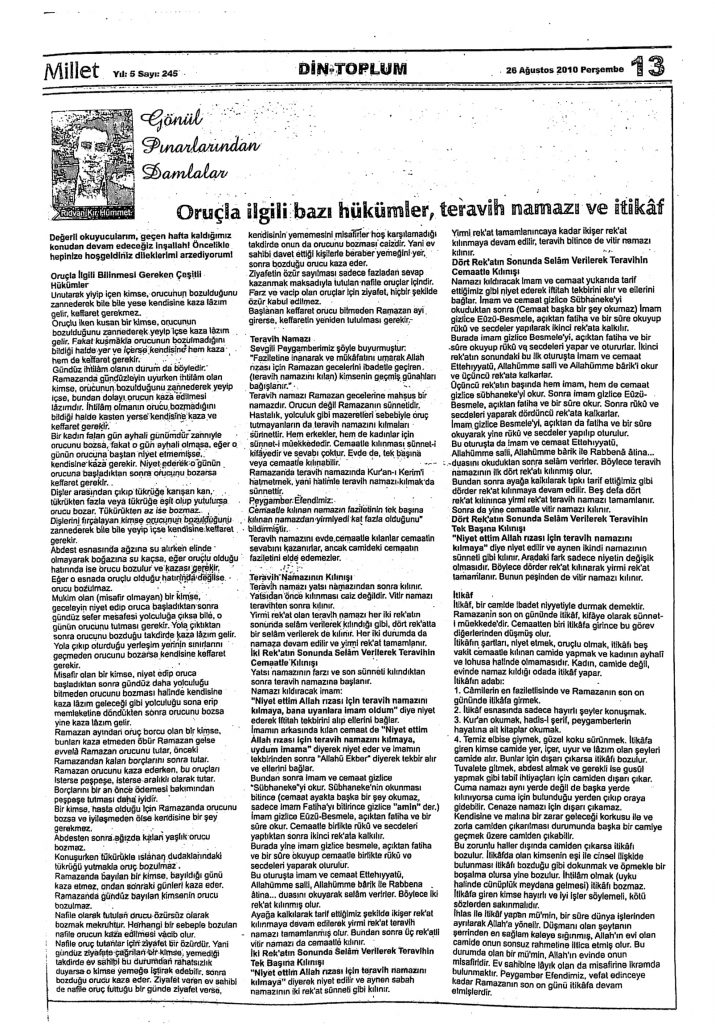 GÖNÜL PINARLARINDAN DAMLALAR – MİLLET GAZETESİ (ORUÇLA İLGİLİ BAZI HÜKÜMLER ,TERAVİH NAMAZI VE İTİKAF)