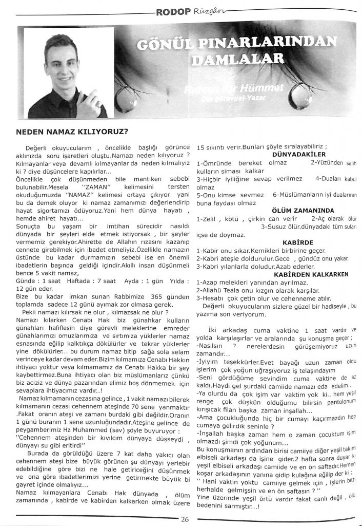 RODOP RÜZGARI DERGİSİ (GÖNÜL PINARLARINDAN DAMLALAR) NEDEN NAMAZ KILIYORUZ ?