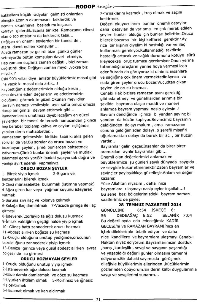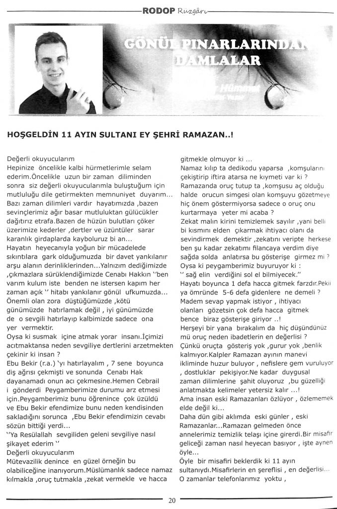 RODOP RÜZGARI DERGİSİ (GÖNÜL PINARLARINDAN DAMLALAR) HOŞGELDİN 11 AYIN SULTANI EY ŞEHRİ RAMAZAN..!