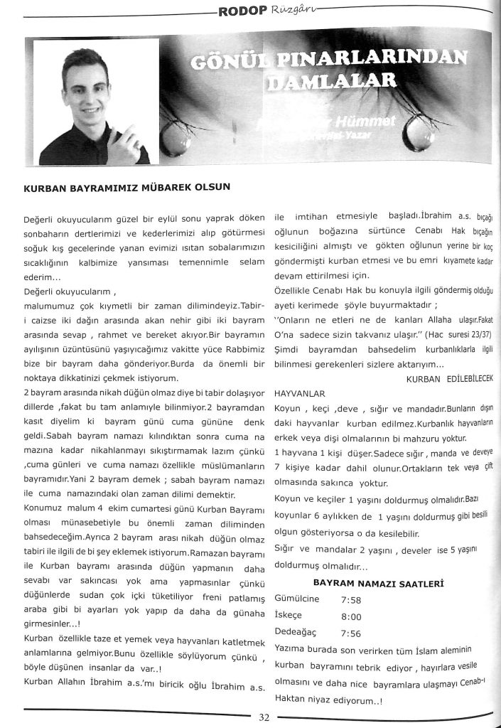 RODOP RÜZGARI DERGİSİ (GÖNÜL PINARLARINDAN DAMLALAR)KURBAN BAYRAMIMIZ MÜBAREK OLSUN